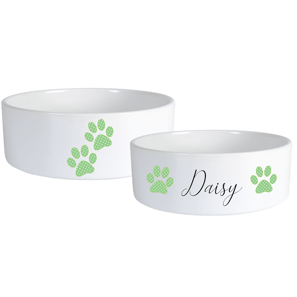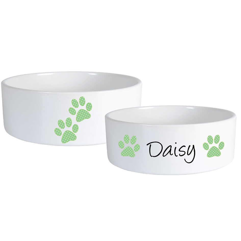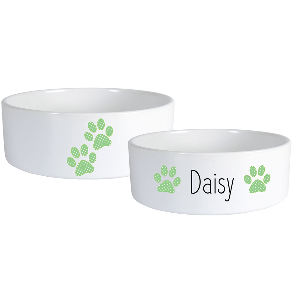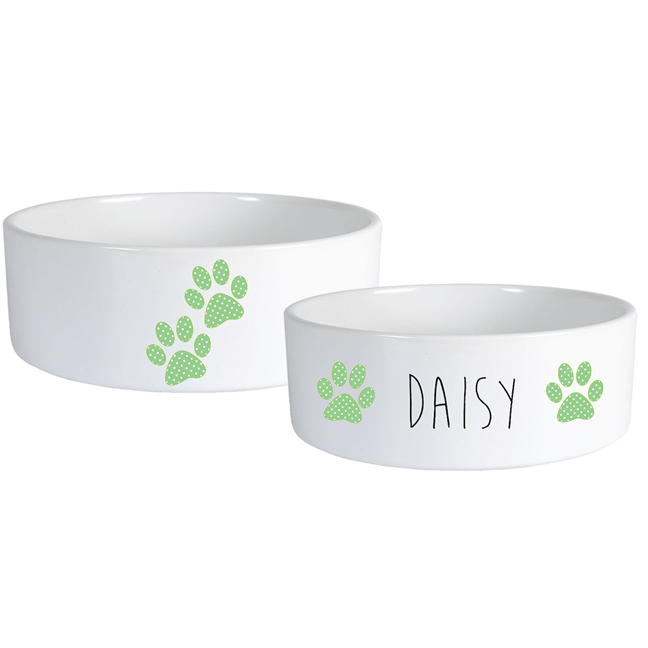 Névre szóló pöttyös mancsos kutyatál szett többféle betűtípussal - Zöld