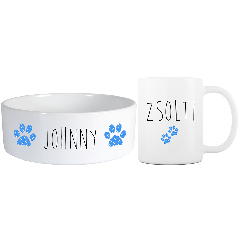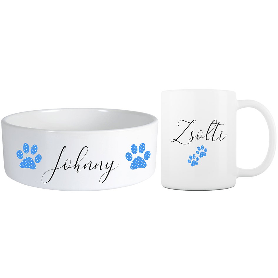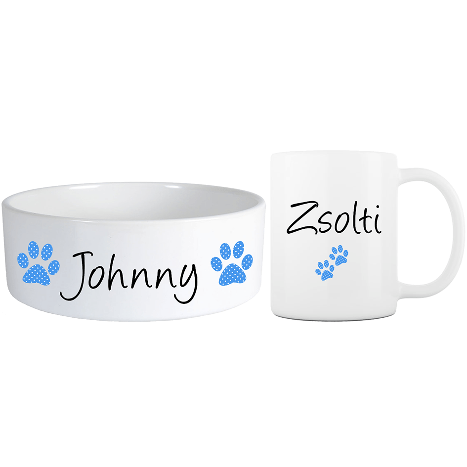 Névre szóló pöttyös mancsos Mini barátság szett többféle betűtípussal - Kék