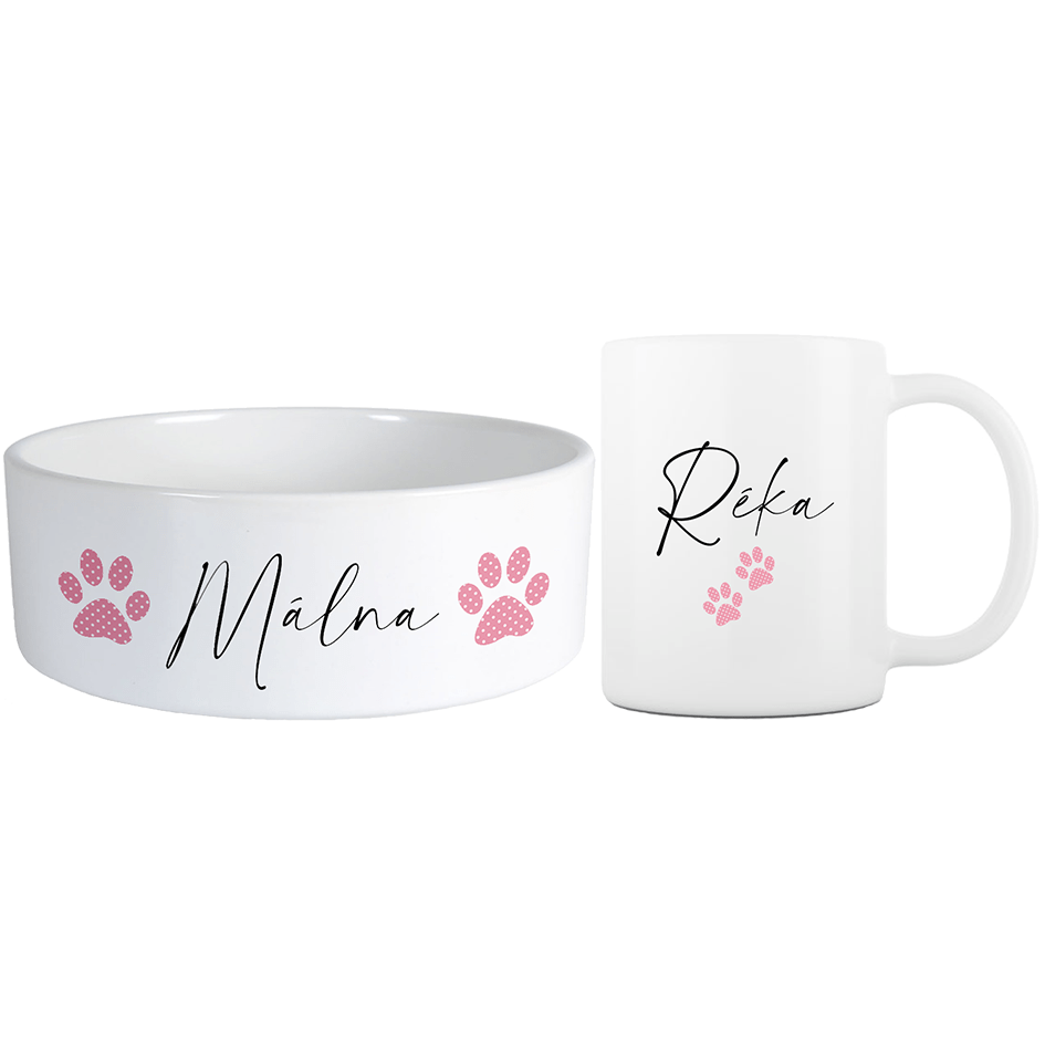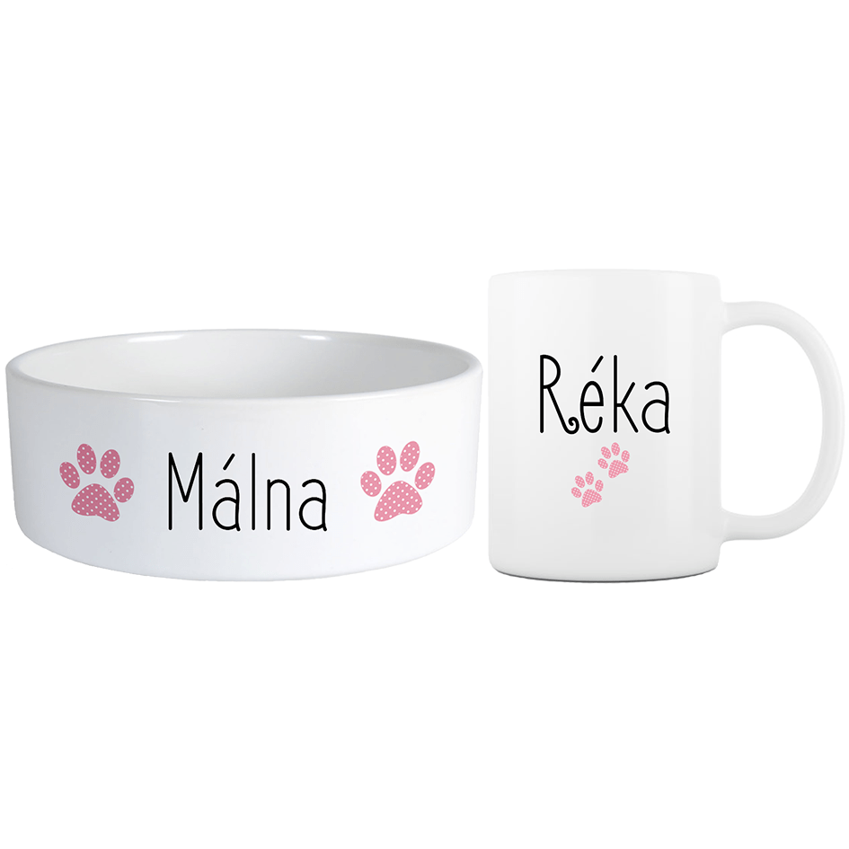 Névre szóló pöttyös mancsos Mini barátság szett többféle betűtípussal - Rózsaszín