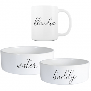 A Woof & Love-nál hiszünk benne, hogy egy etetőtálnak nem csak biztonságosnak és tartósnak kell lennie, hanem stílusosnak is. Saját készítésű mintáinkkal és névre szóló feliratainkkal egyedivé varázsoljuk kedvenced kiegészítőit. A legtöbb felirat és valamennyi grafikánk színe személyre szabható, így kutyusod tálja otthonod dekorációjához is illeszkedik.
