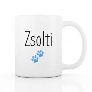 Névre szóló pöttyös mancsos bögre többféle betűtípussal- Kék