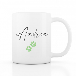 Névre szóló pöttyös mancsos bögre többféle betűtípussal- Zöld